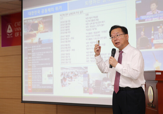 [대학저널 신효송 기자] 더불어민주당 김부겸 국회의원이 지난 8일 대구가톨릭대학교(총장 홍철)에서 '대한민국 공동체의 위기와 정치의 역할'을 주제로 특강을 했다.
