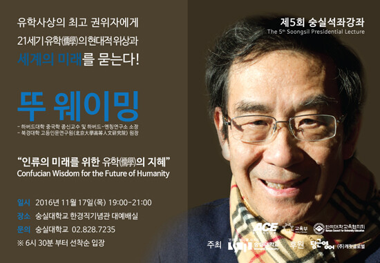 [대학저널 이원지 기자] 숭실대학교(총장 한헌수)는 유학사상의 최고 권위자이자 전통 유학의 현대화를 선도하고 있는 뚜 웨이밍 교수를 초청해 오는 17일 오후 7시 교내 한경직기념관에서 ‘제5회 숭실석좌강좌’를 개최한다.