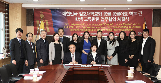 이날 협약식에는 김재복 김포대 총장, 몽골어요 학교 Khumbagai Zolzaya 총장을 비롯한 양 대학 임원진과 교수진들이 참석했다.
