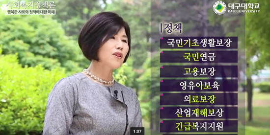 '사회복지정책론-행복한 사회와 정책에 대한 이해' 강좌는 사회복지정책의 개념과 역사, 복지국가 발달이론과 유형, 사회복지정책 제도, 한국의 사회보험·공적부조·사회서비스 등에 대한 내용을 담고 있다.