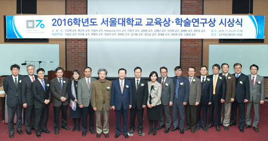 [대학저널 이원지 기자]서울대학교(총장 성낙인)는 교육에 대한 남다른 열정과 창의적인 강의로 교육 수준을 향상시키는 데 크게 기여한 ‘2016학년도 서울대학교 교육상’ 수상자와 창의적이고 활발한 연구활동으로 탁월한 연구실적을 낸 ‘2016학년도 서울대학교 학술연구상’ 수상자를 선정했다.