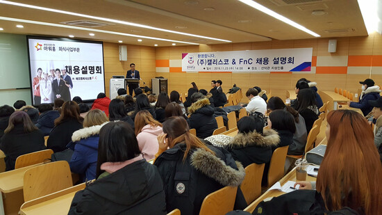 [대학저널 김만중 기자] 경복대학교(총장직무대행 김경복) 호텔관광과는 재학생들에게 취업 기회를 제공하기 위해 (주)캘리스코와 (주)FnC 채용설명회를 개최했다.