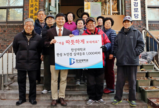 [대학저널 이원지 기자]한성대학교(총장 이상한)는 지난 1일, 서울 삼선동 1가 308번지 ‘한성노인회에 난방용 등유 1000리터를 전달했다.