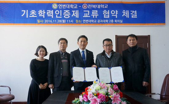 [대학저널 유제민 기자] 전북대학교(총장 이남호)는 최근 중국 옌지시에 위치한 연변대학교와 기초학력인증제 교류협약식을 갖고 기초학력인증제 과목별 문제은행 상호교환과 기초학력인증 학생 교류, 인증서 상호인정, 공동연구·경시대회 공동 개최 등에 합의했다.