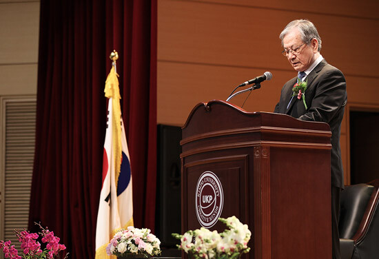 이 총장은 이날 취임사를 통해 "김포대 제7대 총장으로 취임하게 된 것을 영광으로 생각한다. 지역의 대표사학으로서 전임 총장인 김재복 박사께서 이룩한 대학 발전의 토대 위에 대학의 내실을 다지는 새로운 변화를 구성원 여러분과 함께 한마음 한뜻으로 시작하고자 한다"고 포부를 밝히고 이에 따른 구체적인 발전전략을 제시했다. 이 총장은 우선 대학은 반드시 건학이념을 근간으로 운영돼야 한다는 것을 강조했다.