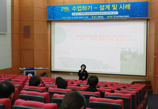 이날 특강은 이재경 숙명여대 교육학부 교수를 초청해 'PBL(Problem-Base Learning) 수업하기-설계 및 사례'란 주제로 진행됐다.