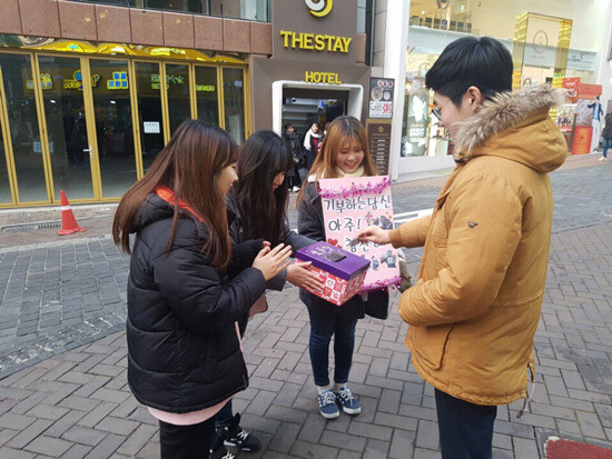 [대학저널 유제민 기자] 삼육보건대학교(총장 박두한) 천사랑 동아리는 지난 17일 명동거리로 나가 연말모금운동에 나섰다.