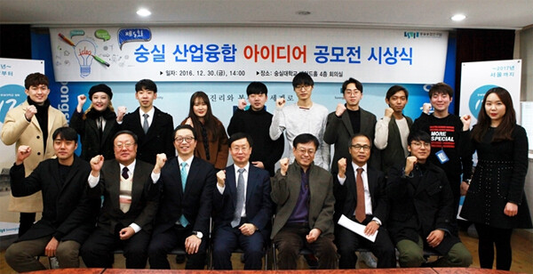 숭실대는 30일 교내 베어드홀 4층 회의실에서 '제5회 숭실 산업융합 아이디어 공모전 시상식'을 개최했다. 숭실 산업융합 아이디어 공모전은 숭실대 숭실융합연구원 주최로 2012년부터 시행되고 있다. 학제 간 융합을 유도하기 위해 반드시 이공계·인문사회·예술계열 학생들이 단일 대학 또는 연합 대학으로 팀을 구성, 참가해야 한다.