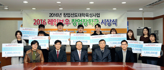 [대학저널 신효송 기자] 한밭대학교(총장 송하영)가 지난 4일 한밭대 대학본부 2층 대회의실에서 '2016 레인보우 창업장학금 수여식'을 개최했다.