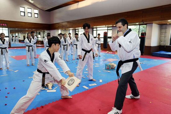 계명대 태권도 시범단의 시범을 관람 한 후 리퍼트 대사는 태권도를 배우는 시간도 가졌다.
