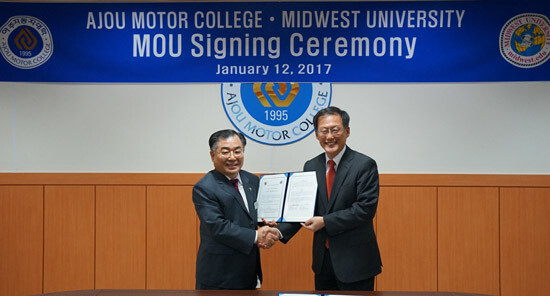 신성호 아주자동차대학 총장은 "아주자동차대학에서 2년 간 자동차분야의 전문기술을 배운 실무형 인재들이 4년제 대학인 미드웨스트대학에서 학업을 이어가거나, 미국 자동차회사에서 인턴쉽을 하는 우리 학생들이 미드웨스트대학의 어학교육과 체계적인 학습관리, 생활지도를 받을 수 있도록 함으로써 우리 학생들의 미국진출 길을 마련하겠다"는 뜻을 밝히고 "미드웨스트대학과의 MOU 체결로 우리 학생들이 기술과 경제, 문화의 중심국가인 미국에서 꿈을 펼칠 수 있을 것"이라며 기대감을 나타냈다.