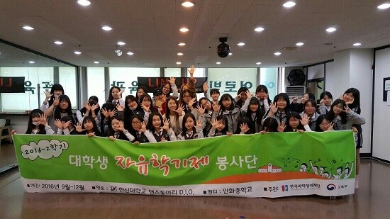한신대 디아이오는 2016년 9월 7일부터 매주 월, 수요일에 안화중학교 자유학기제 멘토링 활동을 진행했다. 월요일은 동아리반 학생 23명에게 춤의 기초와 K-POP, 걸스힙합 등의 장르별 댄스를 가르쳤으며 공연준비도 도왔다. 수요일에는 취미반을 개설해 64명의 학생에게 K-POP 댄스를 가르쳤다.
