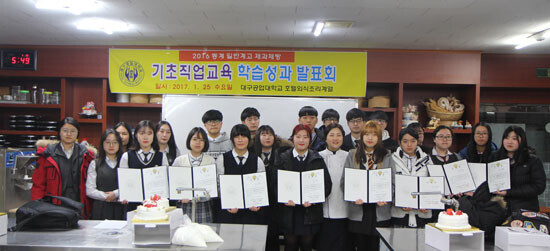 대구공업대 호텔외식조리계열은 지난 2016년 12월 19일부터 일반계고 1, 2학년 학생을 대상으로 해당 교육을 실시했다. 이 교육은 대구광역시 교육청과 연계된 진로맞춤형 기초 직업교육 프로그램으로 제과· 제빵과정과 바리스타과정으로 운영됐다. 이날 성과발표회에는 학부모와 소속 학교 교사들이 참석했다.