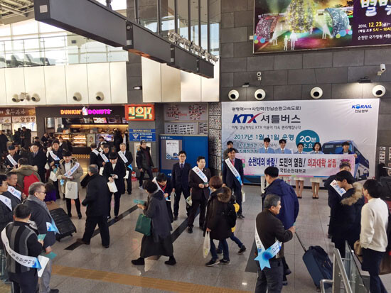 [대학저널 신효송 기자] 순천대학교(총장 박진성)가 설을 맞아 26일 순천역과 순천종합버스터미널에서 귀성객을 대상으로 '대학 홍보 및 의대 유치를 위한 캠페인'을 전개했다.