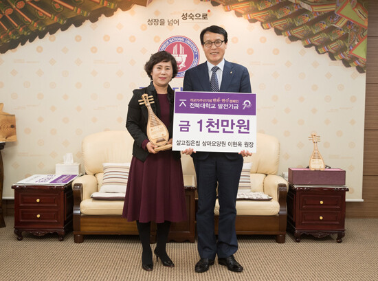 이 원장은 "섬김과 봉사의 마음으로 요양원을 운영해오면서 지역 대표 대학이 우수인재를 양성하는 데 늘 보탬이 되고 싶었다"며 "개교 70주년을 맞은 전북대가 지역의 대표 브랜드가 되는 데 밀알이 되길 바란다"고 말했다.