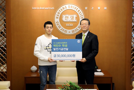 [대학저널 이원지 기자] 국가대표 체조 박민수 선수가 한양대학교(총장 이영무) 후배들을 위해 3000만 원을 기부했다.