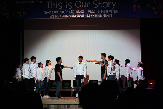 재활자립학과 학생들이 중고등학교 시절 겪은 어려움과 삶이 녹아있는 'This is our story'는 발달장애 아들과 아빠가 갈등을 극복하는 이야기와 은둔형 외톨이로 살아가는 여학생을 사랑으로 품어주는 훈훈한 이야기를 다룬 창작 뮤지컬이다.