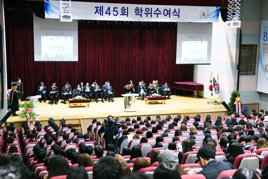 [대학저널 유제민 기자] 인천재능대학교(총장 이기우)는 14일 인천재능대 본관 5층 대강당과 이벤트홀 등 교내 행사장에서 4년제 학사학위 수여자 96명을 포함한 1402명의 졸업생과 재학생, 학부모 등 2800여 명이 참석한 가운데 제45회 학위수여식을 개최했다.