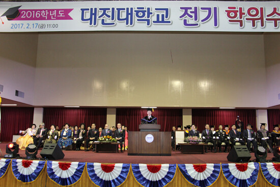 이날 학위수여식에는 학교법인 대진대 윤은도 이사장을 비롯한 이사진과 외부인사, 이면재 총장 및 학교 관계자, 졸업생, 학부모 등이 참석했다.