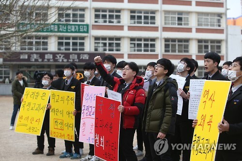 이 학교 1, 2학년생 250여명은 지난 17일 오전 학교운동장에 모여 '연구학교 신청 과정에서 학생, 학부모, 교사 의견을 무시한 만큼 즉각 철회하라'는 내용이 적힌 현수막과 피켓을 들고 시위를 벌였다.