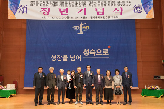 [대학저널 유제민 기자] 전북대학교(총장 이남호)가 2월말로 정년을 맞은 교수들을 위한 기념식을 27일 전북대 진수당 가인홀에서 거행했다.