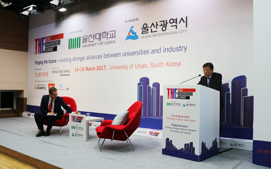 이에 앞서 지난 14일에는 '4차 산업혁명과 대학의 역할'을 주제로 총장 원탁회의(Presidents’ Roundtable)가 열렸다. 회의는 THE 존 모건(John Morgan) 부편집장 진행으로 수카르노 인도네시아 초대 대통령을 배출한 인도네시아 최고 명문인 반둥공과대학의 카다르사 수르야디(Ir Kadarsah Suryadi) 총장, 오연천 울산대 총장, 성낙인 서울대 총장, 김상동 경북대 총장, 김도연 POSTECH 총장 등이 참석한 가운데 열렸다. 오연천 총장은 이 자리에서 “다가오는 4차 산업혁명 시대에 대비해 대학이 생각의 틀을 바꾸고 교육혁신을 이끌어야 한다”고 역설했다.