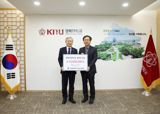 [대학저널 신효송 기자] 경북대학교(총장 김상동)가 27일 경북대에서 윤태경 바로본병원 이사장으로부터 발전기금 1500만 원을 전달받았다. 발전기금은 '정형외과학교실기금'으로 적립된다.