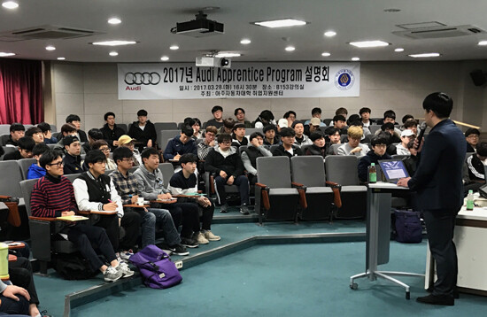 [대학저널 유제민 기자] 아우디 코리아는 지난 28일 아주자동차대학(총장 신성호) 재학생을 대상으로 '아우디 코리아 어프렌티스 프로그램(Audi Korea Apprentice Program. 이하 어프렌티스 프로그램)' 설명회를 개최했다.