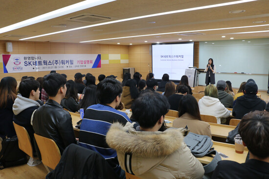 [대학저널 유제민 기자] 경복대학교(총장직무대행 김경복) 호텔관광과가 지난 27일 경복대 남양주캠퍼스 선덕관 전문인홀에서 산학협력 기업인 SK네트웍스 (주)워커힐 호텔 김명호 차장을 비롯한 주요 관계자들을 초청해 취업 설명회를 실시했다.