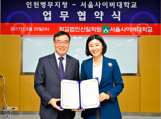 [대학저널 유제민 기자] 서울사이버대학교(총장 이은주)와 인천병무지청(청장 김대년)이 지난 29일 서울사이버대 B동 국제회의실에서 업무협약을 체결했다.