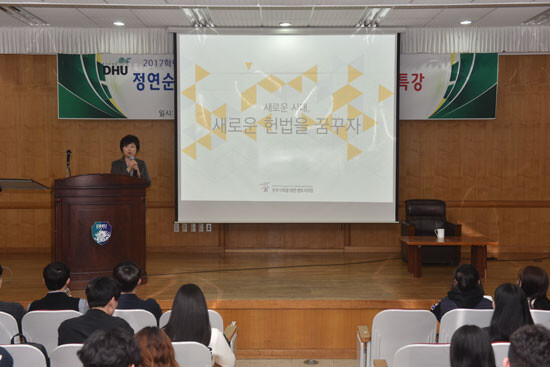 [대학저널 신효송 기자] 대구한의대학교(총장 변창훈) 기초교양대학이 지난 30일 대구한의대 바이오센터 강당에서 재학생 200여 명이 참석한 가운데 '민주사회를 위한 변호사 모임' 정연순 회장을 초청, '새로운 헌법을 꿈꿔보자'라는 주제로 특강을 실시했다.