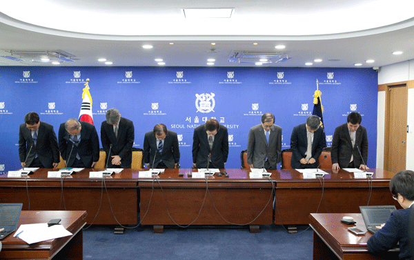 이어 성 총장은 "지난 시간의 갈등으로 국민들께 심려를 드린 것과 갈등의 과정 속에 원칙과 규범이 흔들려 대학 구성원들을 실망시켜 드린 것에 대해 송구스럽게 생각한다"며 "서울대는 학문 영역에서뿐 아니라 도덕성에서도 국가의 모범이 돼야 한다. 도덕성과 원칙을 회복시키기 위해 만전의 노력을 기울이도록 하겠다"고 밝혔다.