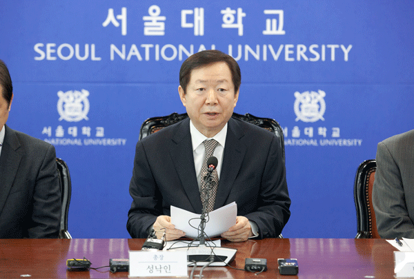 성낙인 서울대 총장은 31일 서울대 행정관에서 기자회견을 열고 담화문을 발표했다. 먼저 성 총장은 시흥캠퍼스 사태에 대해 유감과 사과의 뜻을 표했다. 성 총장은 "행정관 이사 추진과정에서 (행정관) 점거 학생들과 교직원 간 매우 불행한 상황이 발생, 총장으로서 착잡한 심정"이라면서 "이번 사태로 마음의 상처를 입은 교직원과 학생들께 사죄의 말씀을 드린다. 서울대를 아끼고 사랑하는 동문과 국민 여러분께도 심려를 끼쳐드려 송구스럽다"고 밝혔다.