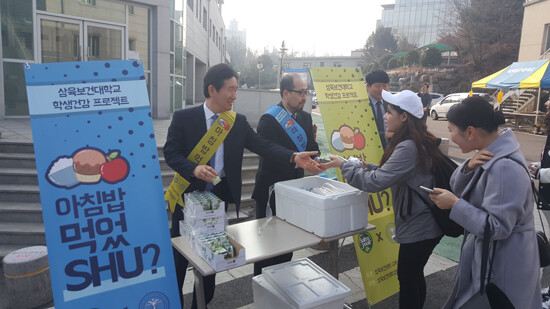 [대학저널 유제민 기자] 삼육보건대학교(총장 박두한)가 학생들에게 간단한 아침식사를 제공하는 학생건강 프로젝트 '아침밥 먹었SHU?'를 진행하고 있다.