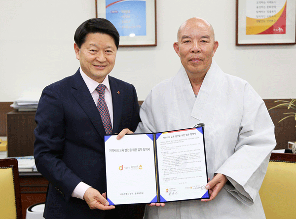 앞으로 양 기관은 △지역사회 발전 연구과제 개발·수행 △주민복지·삶의 질 향상 교육프로그램 개발·운영 △교육연구 연계 협력사업 △동국대 미래융합대학·평생교육원 등과 연계한 구민참여 프로그램지원 등에 있어 협력할 방침이다.