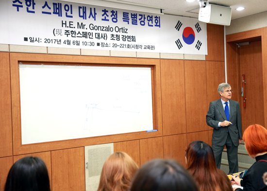이번 특강은 울산대 스페인·중남미학과 학생들의 요청을 곤살로 오르티스 스페인대사가 수락함으로써 이뤄졌다.