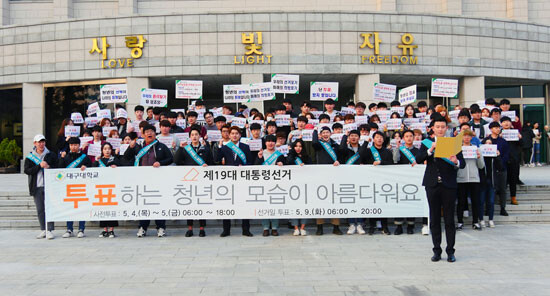 김영표 대구대 학생행복처장은 "학생들이 자신들의 권리를 찾는 선거 참여를 통해 진정한 민주주의를 배워나갈 수 있도록 대학도 적극 지원하겠다"고 말했다.
