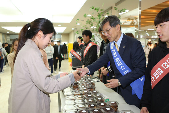 [대학저널 유제민 기자] 인하공업전문대학(총장 진인주)이 17일 시험공부에 여념이 없는 학생들을 위해 쿠키를 나눠주며 재학생들을 격려하는 자리를 마련했다.