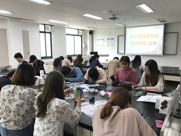 [대학저널 이희재 기자] 한국교통대학교(총장 김영호)가 청주교대 학생들을 대상으로 지난 4월 28일 한국교통대 무한상상실에서 3D프린팅 교육과 3D펜 체험 프로그램을 진행했다.