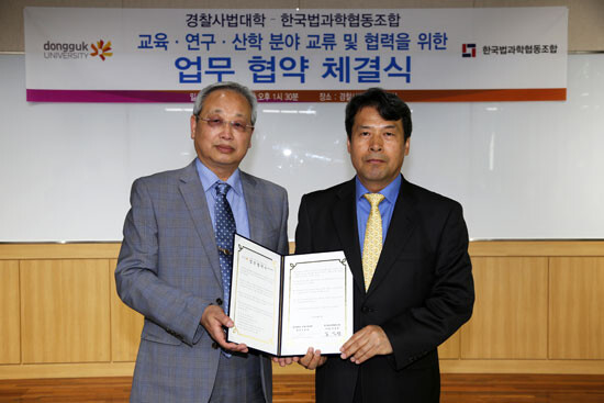 [대학저널 신효송 기자] 동국대학교(총장 한태식) 경찰사법대학이 지난 4월 27일 동국대 서울캠퍼스 혜화관 고순청 세미나실에서 한국법과학협동조합(이사장 김일평)과 교육발전 및 산학협력을 위한 업무협약을 체결했다.