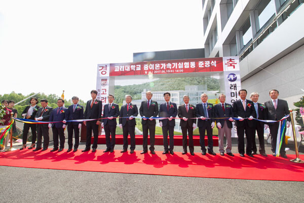 염재호 고려대 총장은 "오늘 준공한 실험동은 과학벨트의 핵심인 라온 중이온가속기 구축과 국가 가속기 과학기술 발전에 중요한 역할을 담당할 것"이라며 "이를 계기로 고려대는 가속기 분야 석박사급 전문인력의 양성과 국제적인 산학연 연구협력체계 구축을 통해 가속기과학 선도 대학으로 발전해 갈 것"이라고 말했다.