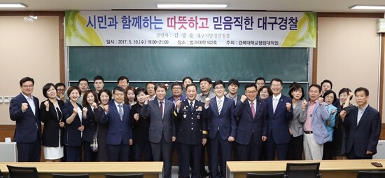 [대학저널 유제민 기자] 경북대학교(총장 김상동) 행정대학원은 지난 10일 경북대 법과대학 502호에서 김상운 대구지방경찰청장을 초청해 특강을 개최했다.