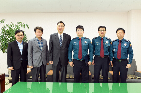 [대학저널 유제민 기자] 부경대학교 김영섭 총장은 15일 응급상황에 신속하게 대처해 학생 생명을 구한 부산 남부경찰서 대연지구대 소속 윤병범 경위와 홍민우 순경에게 감사장을 수여했다.