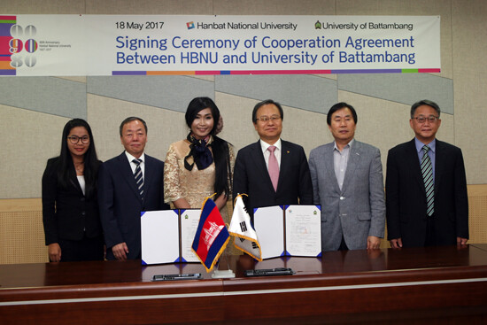 이날 송하영 한밭대 총장과 시엥 엠토팀(Sieng Emtotim) 바탐방대학 총장은 양 대학 국제교류 관계자들이 배석한 가운데 협정서에 서명했다. 이후 학술교류와 교환학생 프로그램 등 양 대학의 다양한 상호협력 방안에 대해 논의했다.