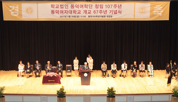 [대학저널 신효송 기자] 동덕여자대학교(총장 김낙훈)가 26일 동덕100주년기념관 대강당에서 '동덕여학단 창립 107주년, 개교 67주년 기념식'을 거행했다.