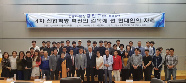 강민구 법원도서관장은 인하대 공학대학원 춘계세미나 특강을 통해 '4차 산업혁명 혁신의 길목에 선 현대인의 자세'를 주제로 강연을 진행했다.