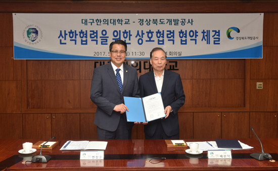 [대학저널 유제민 기자] 대구한의대학교(총장 변창훈)는 29일 대구한의대 대학본관 회의실에서 경상북도개발공사(사장 배판덕)와 산학협력 협약을 체결했다.