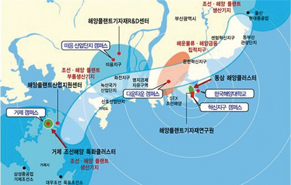 세부적으로 본교 인근 혁신지구에 세운 혁신지구 캠퍼스는 산학협력 실해역 공동연구 및 실습선을 활용한 교육·연구 테스트 베드형 캠퍼스를 운영한다. 조선기자재 생산업체가 밀집돼 있는 서부산의 미음 산업단지 캠퍼스는 산학협력 공동체를 통해 선취업-후진학 프로그램 등 인력양성-R&D-고용의 선순환 체계를 구축한다.