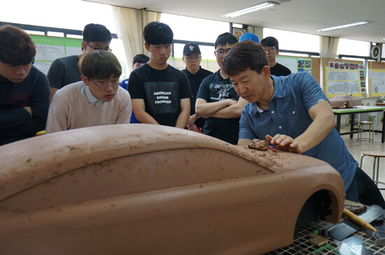 아주자동차대학 자동차디자인전공 학생들은 이날 최신 자동차 모델 제작 프로세스와 클레이 툴 사용법 등을 전수 받았다.