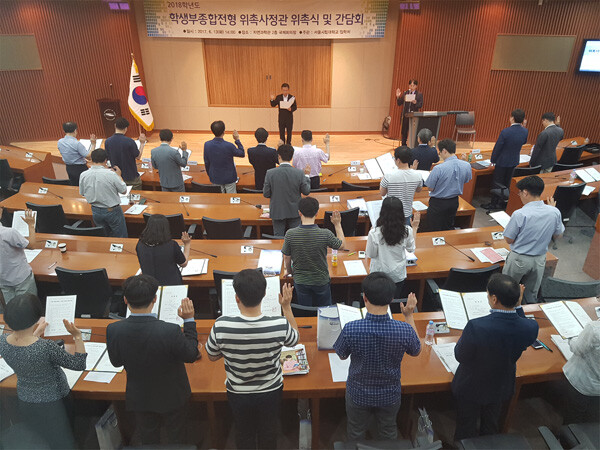 [대학저널 신효송 기자] 서울시립대학교(총장 원윤희)가 지난 13일 서울시립대 자연과학관 국제회의장에서 '2018학년도 학생부종합전형·고른기회입학전형 위촉사정관 위촉식 및 윤리강령 선포식'을 개최했다.